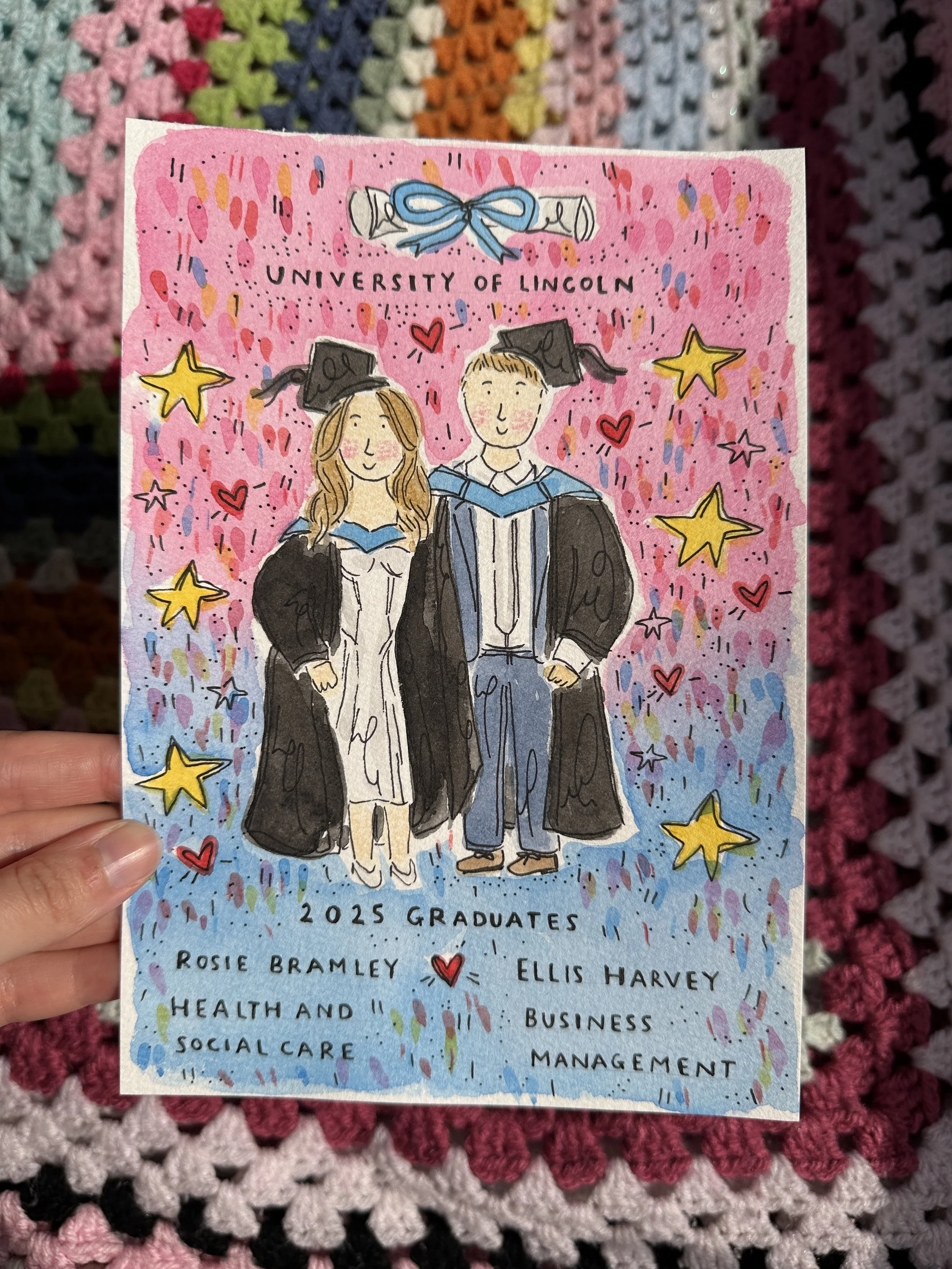 Graduation is such a special milestone- why not capture it forever with a custom hand-painted portrait? Whether it’s you, a loved one, or your whole graduation group, I’ll create a piece that celebrates your achievement and personality. Fill out the form below to start your enquiry!